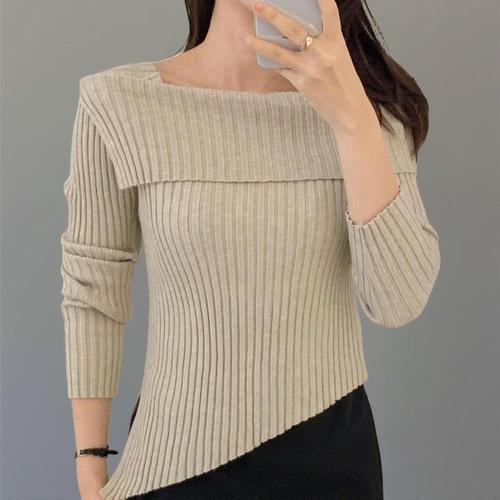[신상오픈런]여성 오프숄더 긴팔 니트 초커넥 골지 티셔츠