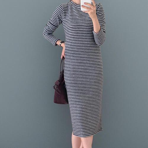 [미라클세븐]여성 가을 골지 단가라 롱 홈웨어 원피스
