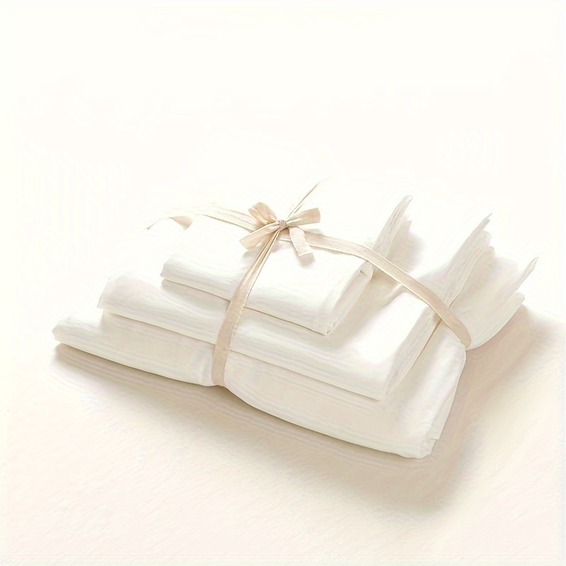 TEMU 4개의 고무줄이 달린 흰색 스킨 친화적인 침구 세트, 이불 커버, 시트, 베개 커버 2개 포함 (이불 및 베개 삽입물 제외), 침실, 거실, 호텔, 기숙사에 적합, 모든 계절에 사용 가능, 데이 선물로 완벽합니다.