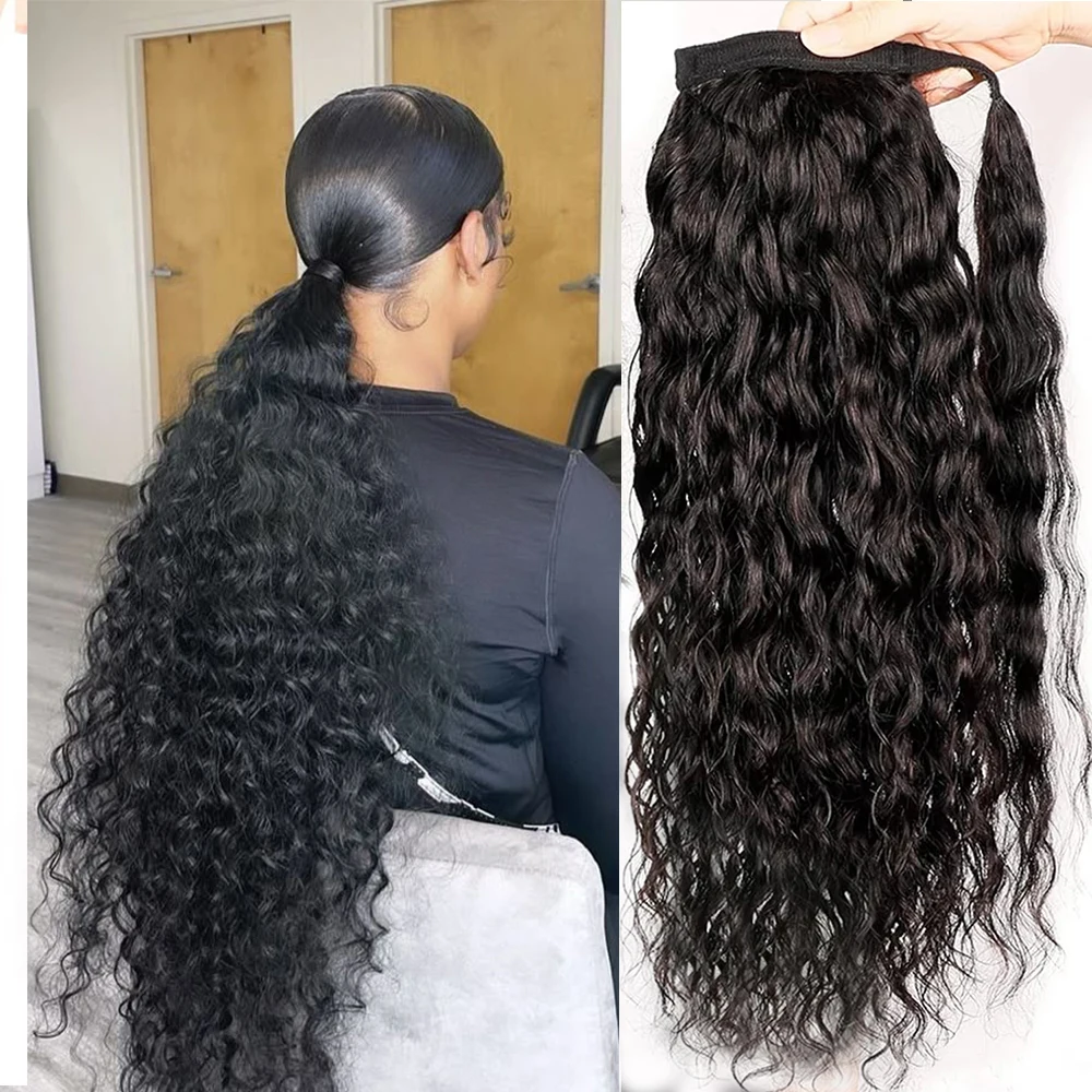 물결 포니테일 붙임머리 인모 랩어라운드 콘 웨이브 포니 매직 페이스트 브라질리언 인모 붙임머리 여성용