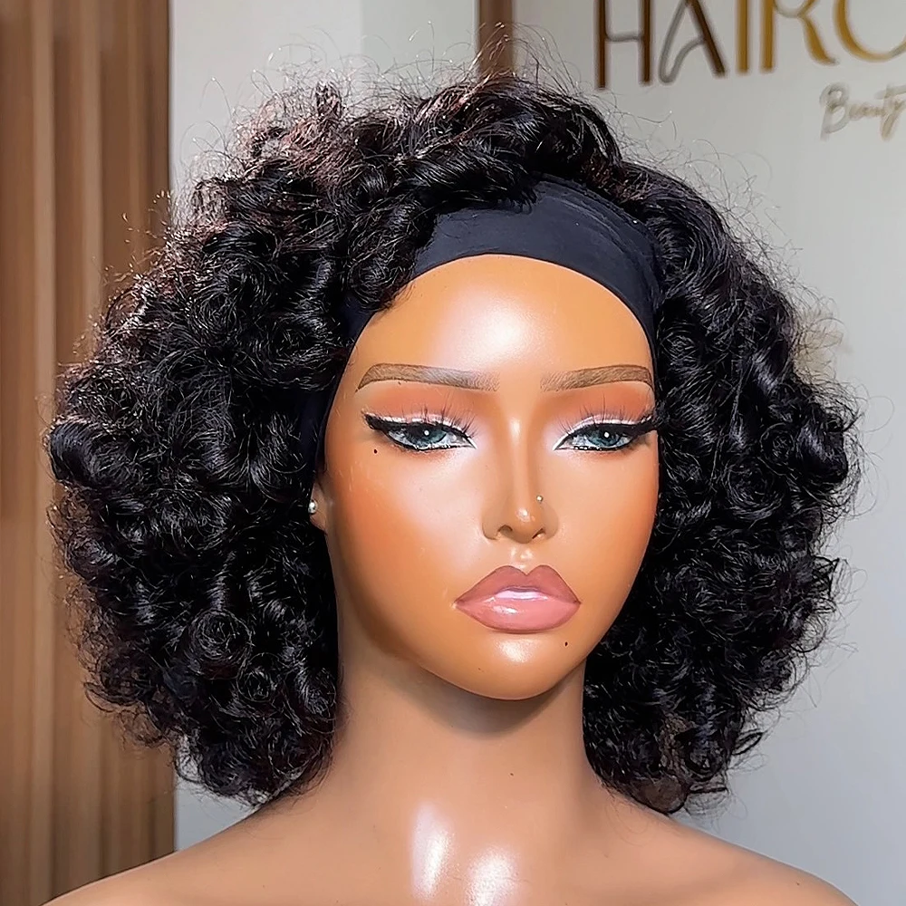 짧은 곱슬 밥 가발 앞머리 자연 블랙 브라질 곱슬 인간의 머리 가발 여성을위한 기계 만든 180% 밀도