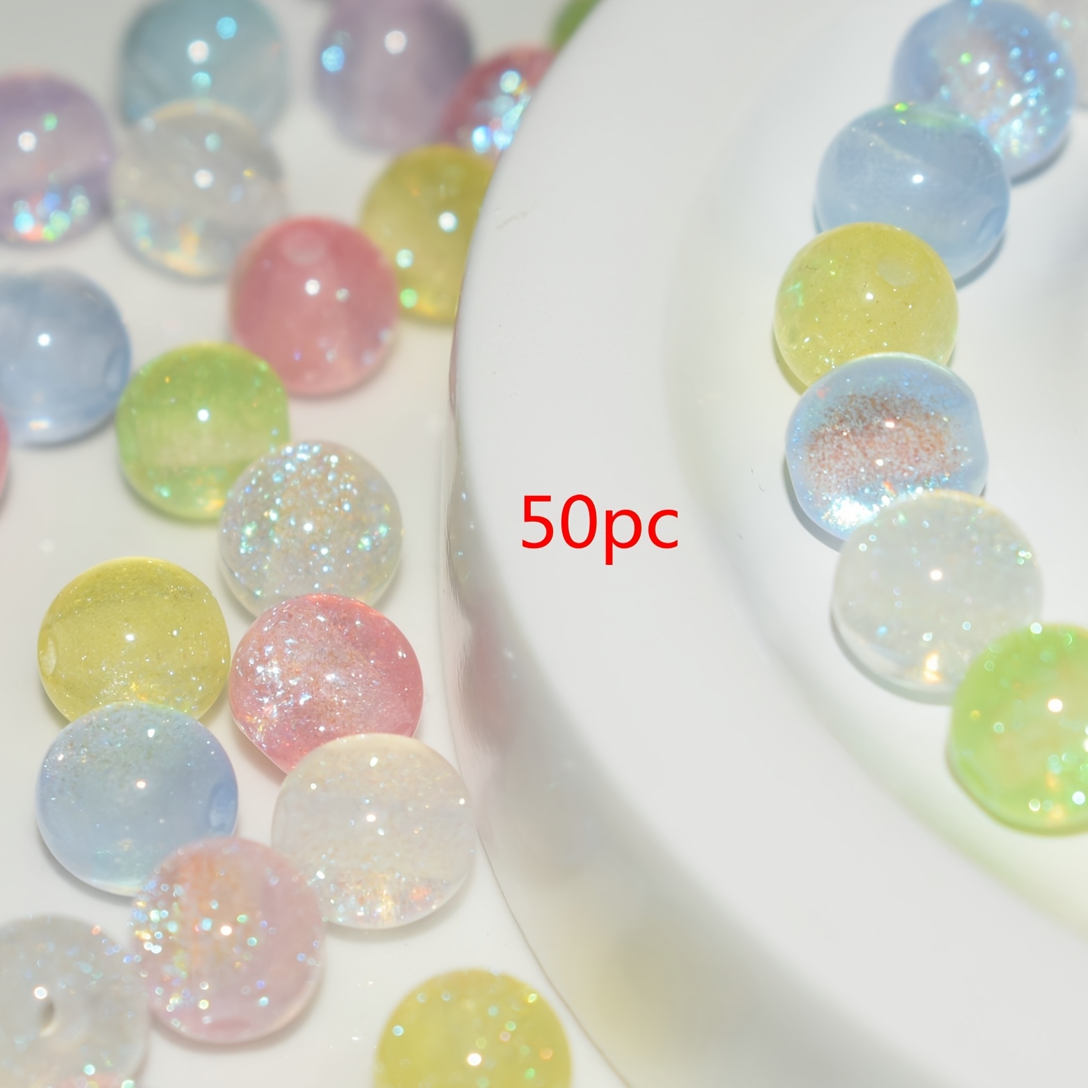 TEMU 50개 8mm 파스텔 반짝이 라운드 비즈 - 빛나는 광택 DIY 액세서리 제작용, 팔찌·목걸이·신발·가방 장식 - 크리스마스, 졸업, 스승의 날 선물, 생동감 넘치는 컬러, 무지개빛 마무리, 매끄러운 질감, 수제 공예 재료, 선물 쇼핑