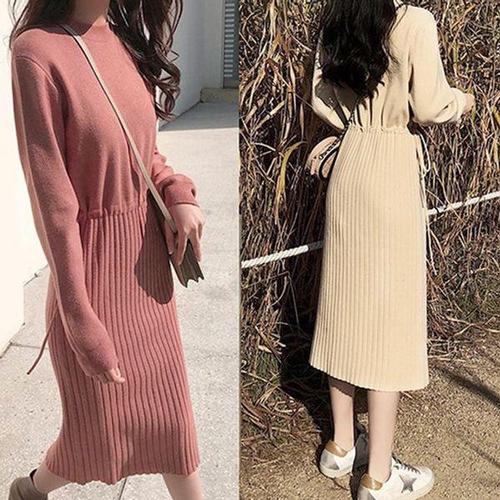 [에이치플러스몰]니트원피스 가을 겨울 사이드 스트링 루즈핏 롱원피스
