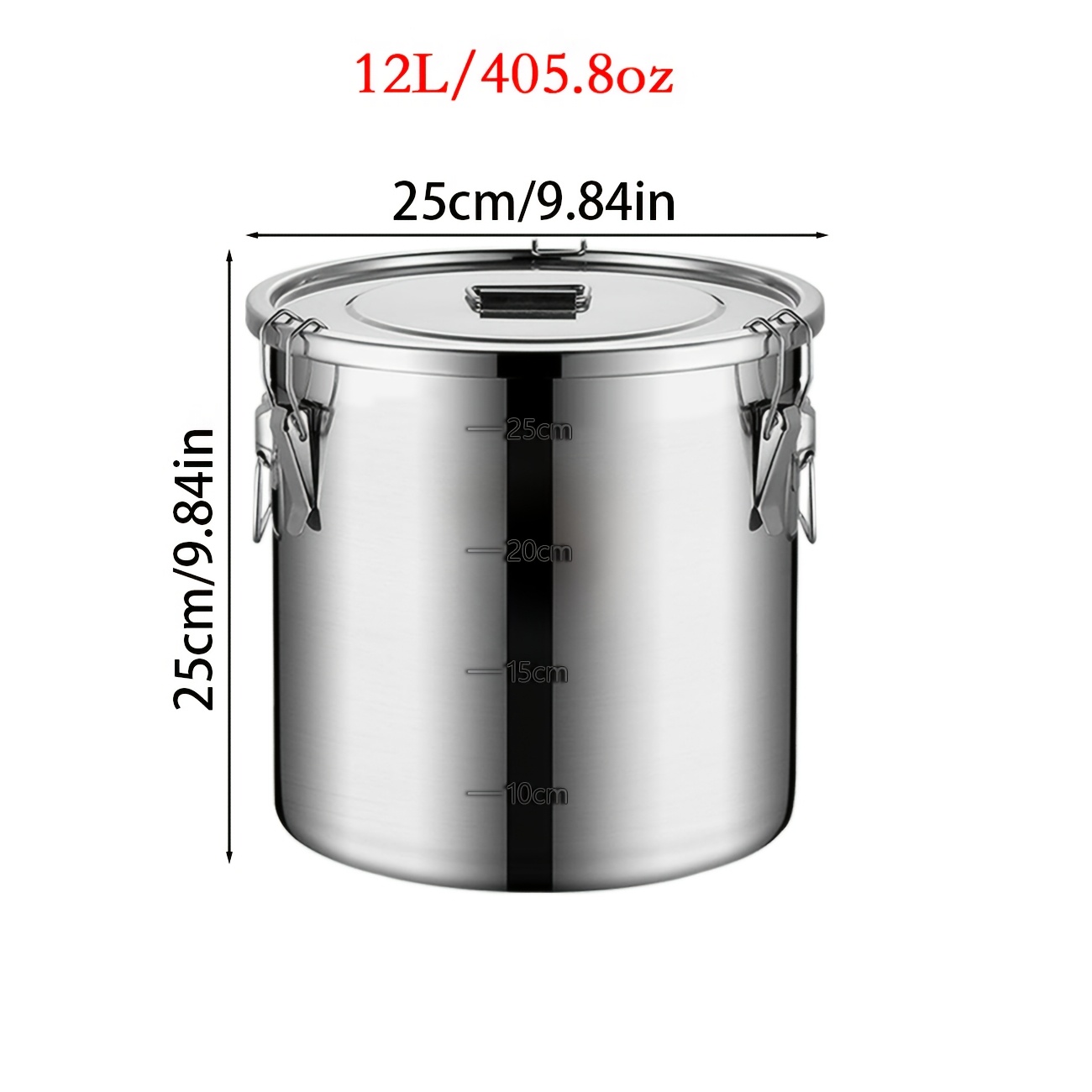 TEMU 6/12L 스테인리스 스틸 밀폐 버킷 | 다기능, 방습, 눈금 표시, 아이스티, 우유, 쌀, 기름 보관에 적합, 클립형 잠금, 재사용 가능, 원통형, 201 스테인리스 스틸