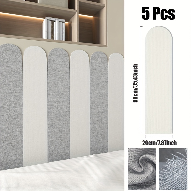 TEMU 5개입, 대형 사이즈, 7.87인치 X 35.43인치, 자가 점착 린넨 질감 벽지, 두꺼운 다다미 벽면, 비닐 소재, 충격 방지, 방음 벽 스티커, 보호 벽 스커트 벽지, 더 프리미엄한 느낌을 위한 실제 천 질감
