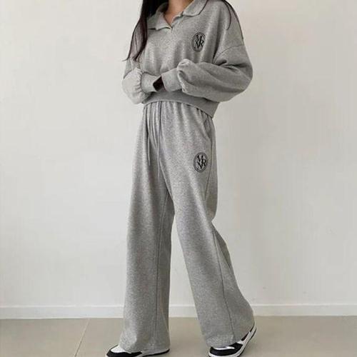 [에이치플러스몰]여성 크롭 긴팔 운동복 세트 1P 스포츠 와이드 팬츠
