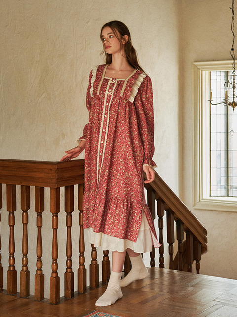 [울랄라파자마] 텔링 긴팔 원피스 딥레드 (21수)