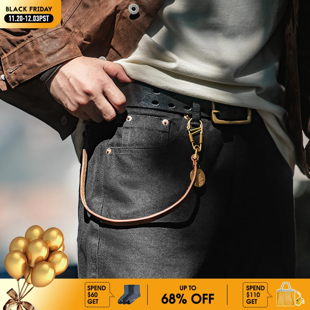 Maden 남성용 헐렁한 데님 청바지, 아메리칸 레트로 퓨어 블랙 미드 웨이스트 청바지, 워터 워싱 스트레이트 포켓 클래식 스타일 탄닌 바지