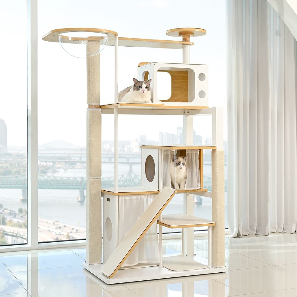 Y2 원목 6단 캣타워 스크래쳐 해먹 고양이 숨숨집 캣폴