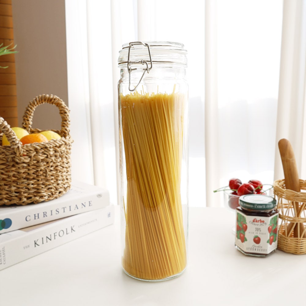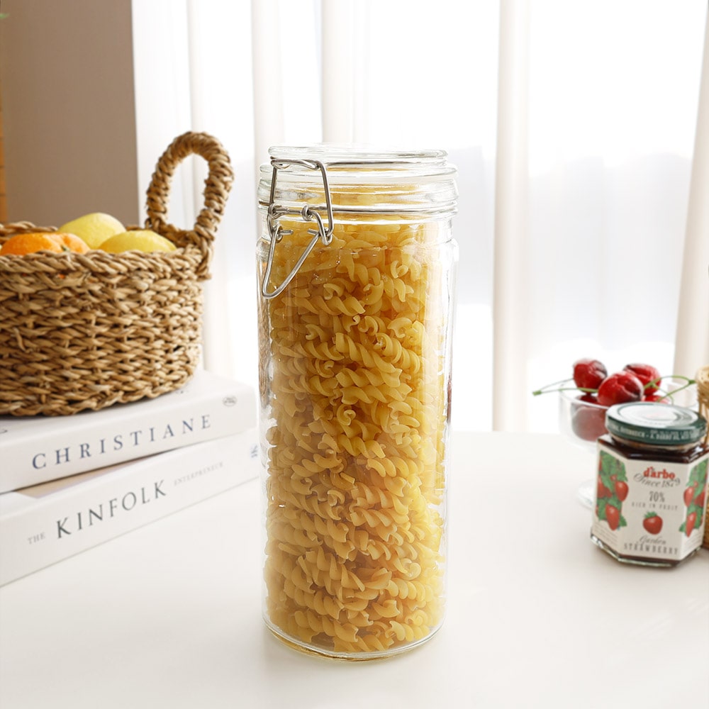 다용도 슬림 원통형 밀폐 유리병 2000ml 4개 파스타 곡물용기 보관통