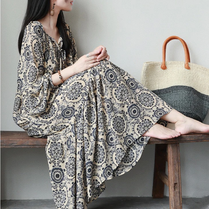 TEMU 행운을 불러오는 프린트 롱 드레스 여성용