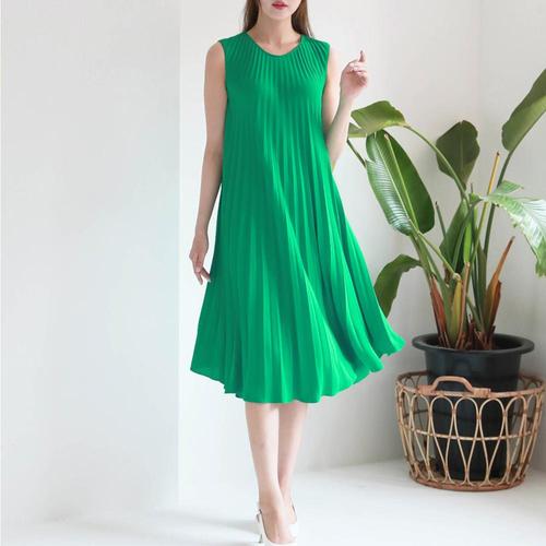 [옷자락] [시즌오프]주름원단 a라인 휴양룩 비비드 민소매 원피스_5