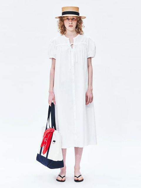[유니폼브릿지] 24SS 셔링 롱 원피스(우먼) 화이트