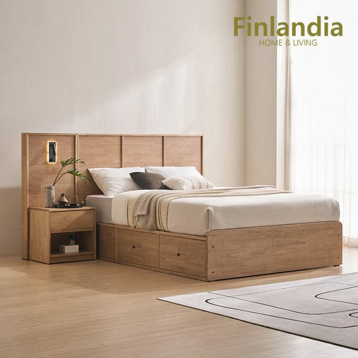 핀란디아 [역마진 비밀특가] 핀란디아 프렌드 호텔형 서랍침대Q[오크/오일]+보조월2+협탁2