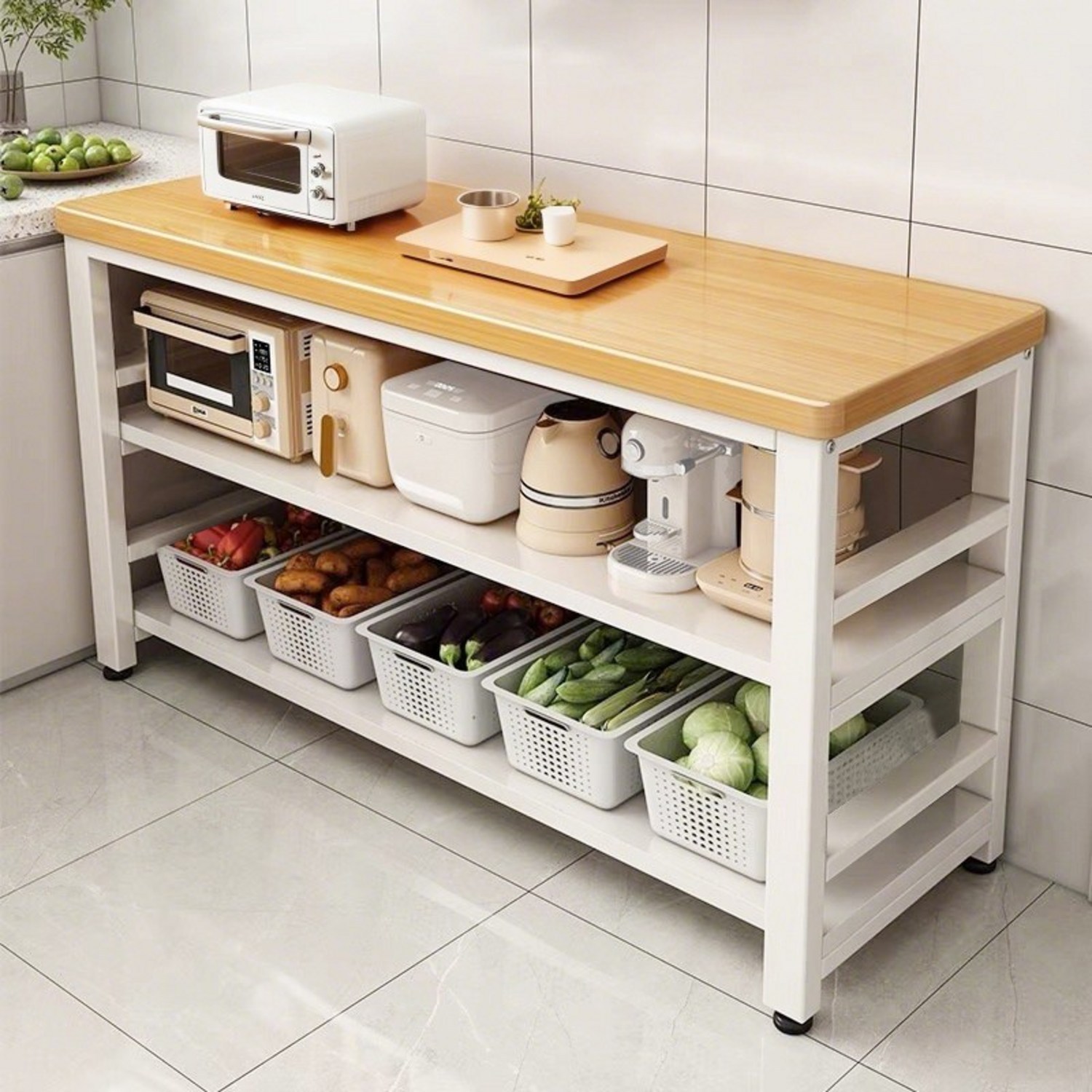 TEMU OYIKYI 업그레이드 주방 수납장 수납 진열장 3단 대형 주방 보조 테이블 튼튼한 와이드 수납 선반 전자레인지선반 찬장 선반 다용도 거실 정리대 식탁 렌지대 작업용 1000/1200 - 카운터탑 공간 확장용 독립형 주방 보관 정리함, 블랙/화이트, 주방, 거실, 침실