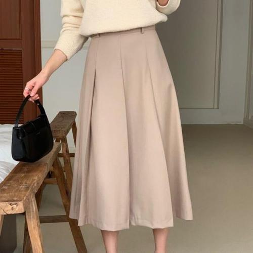 [다잇템]여자 웨딩 핀턱 봄맞이 에이라인 롱스커트