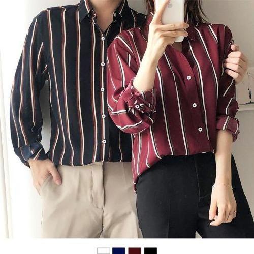 [에이치플러스몰]스트라이프 웨딩촬영커플룩 커플시밀러룩 파자마
