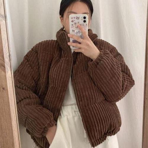 [셀러허브_여성트랜드패션]Rly 스트링 겨울 숏 코듀로이 웰론 하이넥 방한 패딩