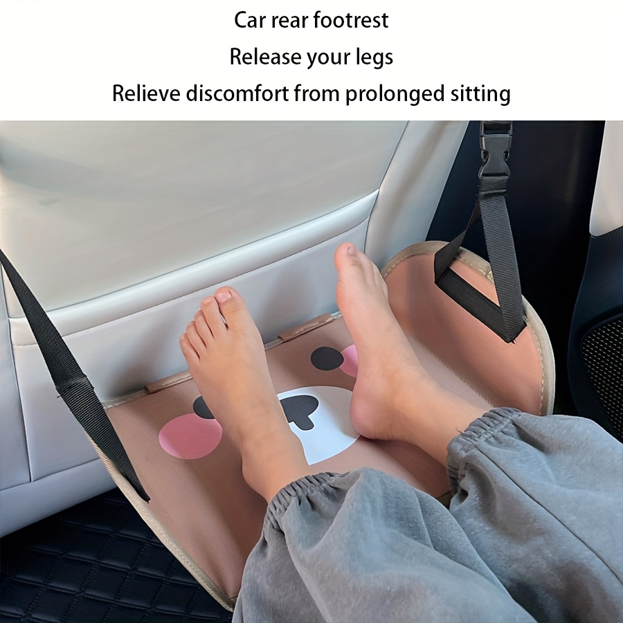TEMU 귀여운 갈색 곰 패턴 자동차 시트 뒷면, 조절 가능한 스트랩이 있는 휴대용 발받이, 여행 및 사무실 편안함에 적합, 만화 스타일로 지원을 제공, 모든 자동차에 적합, 완벽한 휴일 선물