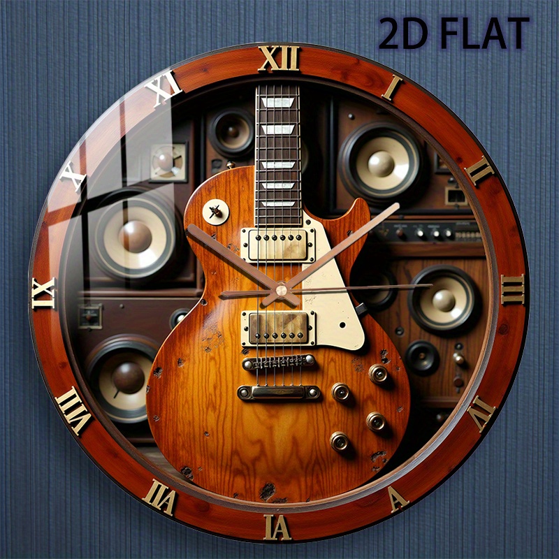 TEMU 2D 플랫 빈티지 전기 기타 벽시계 - 레트로 록 장식, 브라운 마감, AA 배터리 구동 (포함되지 않음) - 거실, 음악 스튜디오, 기타 가게용 현대 홈 데코 선물, 음악 애호가 액세서리, 내구성 있는 소재, 아티스틱 디자인, 2D 플랫|벽시계|벽시계