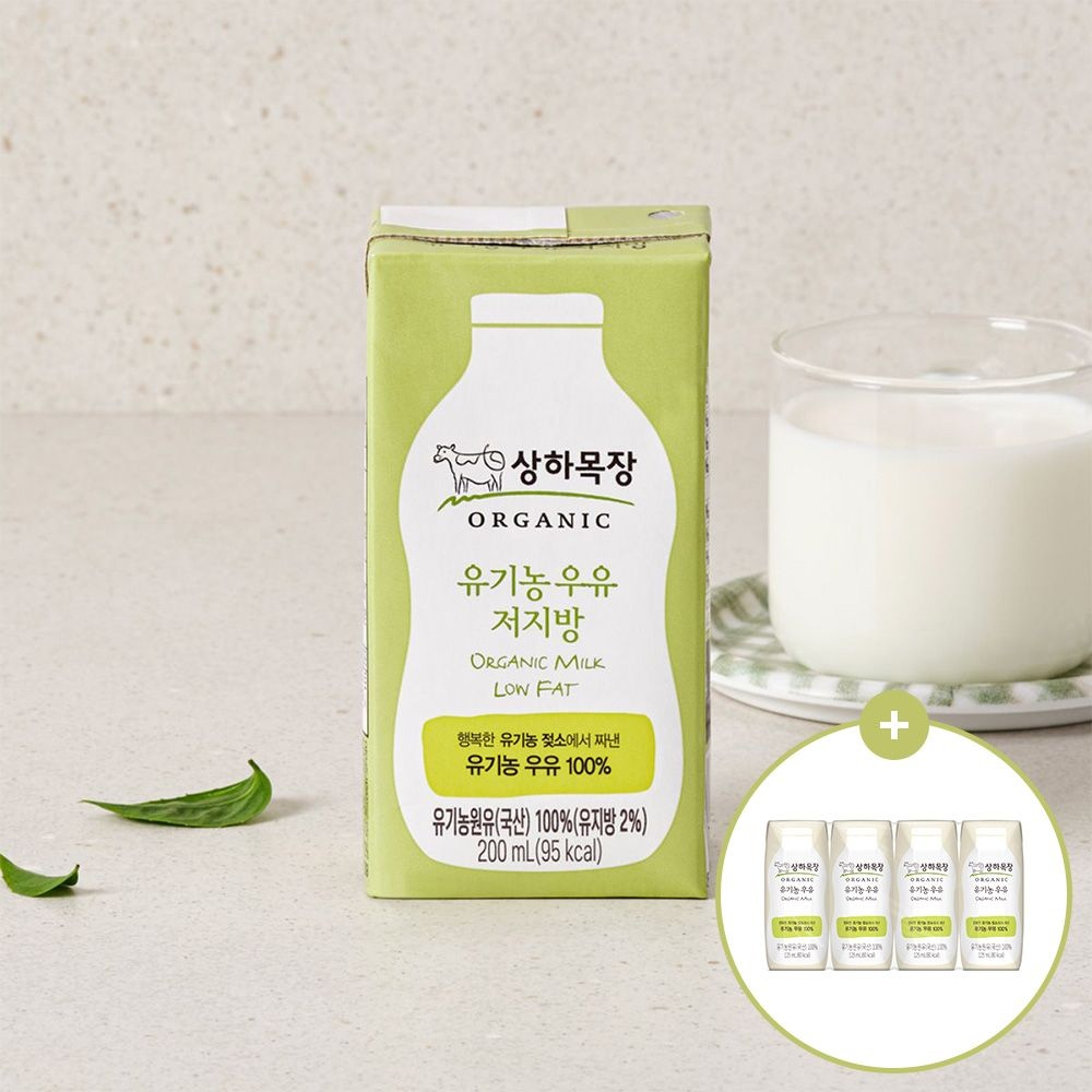 상하목장 유기농 멸균 저지방우유 백색 200ml 48팩+125ml 4팩 증정