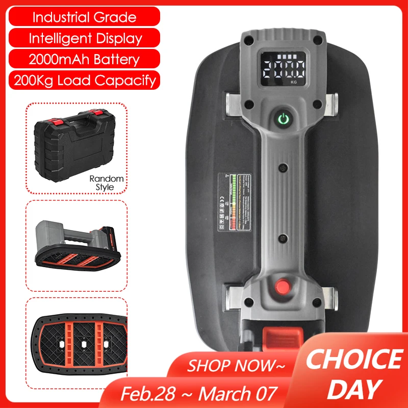 산업용 등급 대형 전기 진공 흡입 컵 200Kg 부하 휴대용 핸드 헬드 유리 화강암 타일 목재 리프터 도구 2000mAh