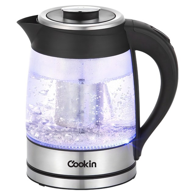 키친아트 전기포트 커피 무선 유리 포트 티 티팟 티메이커 주전자 1.8L 대용량 유리 불빛