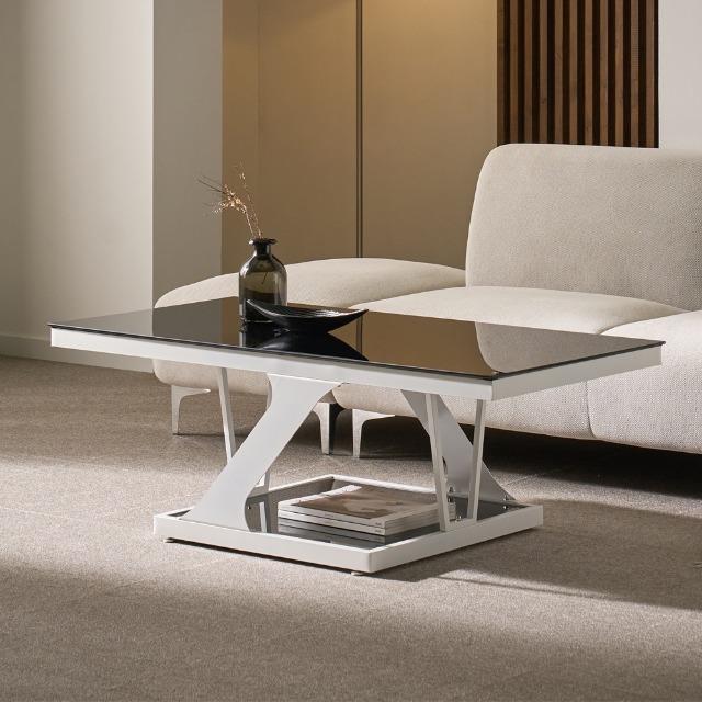 원형 쇼파테이블 대리석 무늬 유리 탁자 투명 서랍 거실 테이블