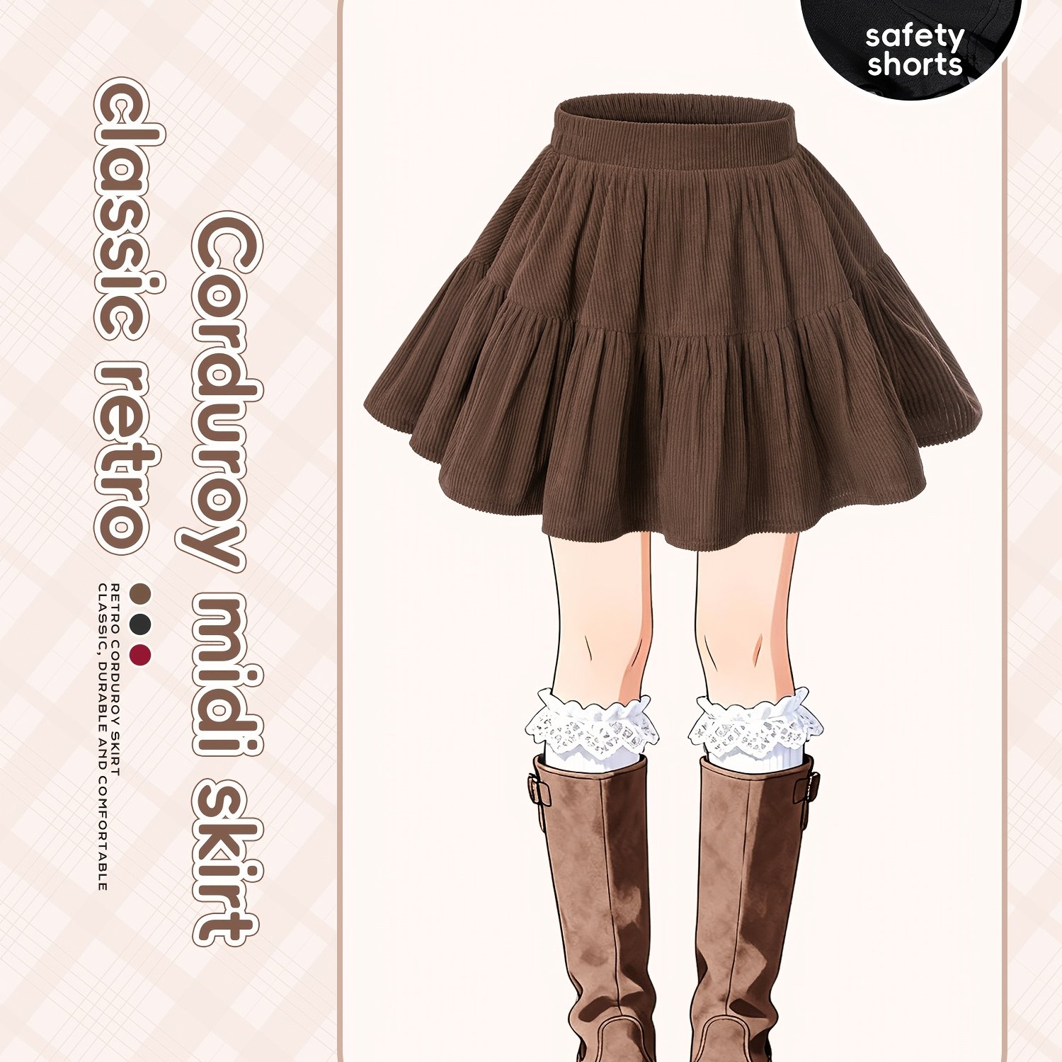 TEMU 1개 여아용 코듀로이 공주 스커트 | 빈티지 질감, 튼튼함, 피부 친화적, 플리츠, 반바지, 허리 조임 없음, 커피 색상, 가을/겨울에 적합