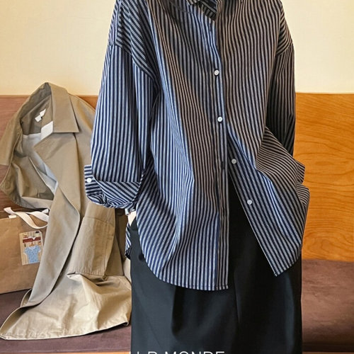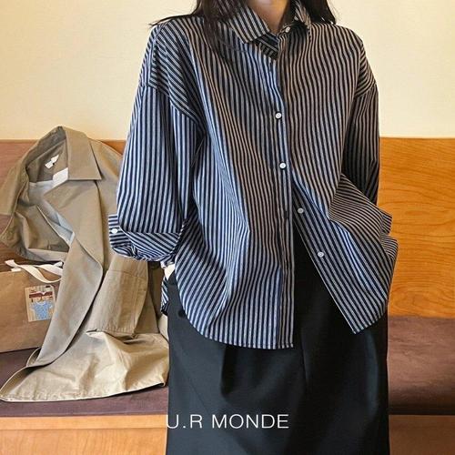 [유아몽드]카라넥 롱 셔츠 스트라이프 넓은 소매 오버사이즈 스