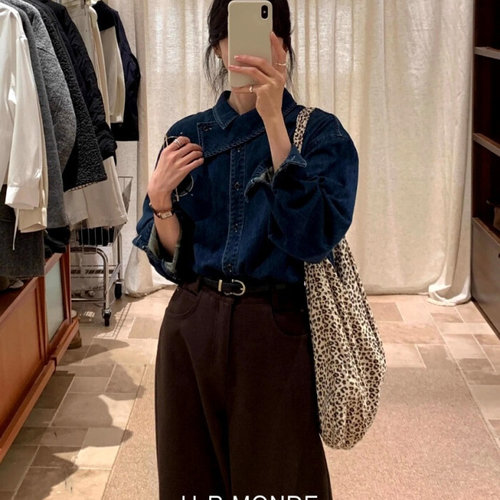 유아몽드 / 여성 청셔츠 오버핏셔츠 남방 데님 카라넥 청 긴팔 셔