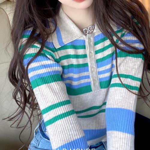 유아몽드 / 스트라이프 니트 롱 여름 원피스 카라넥 머메이드 반