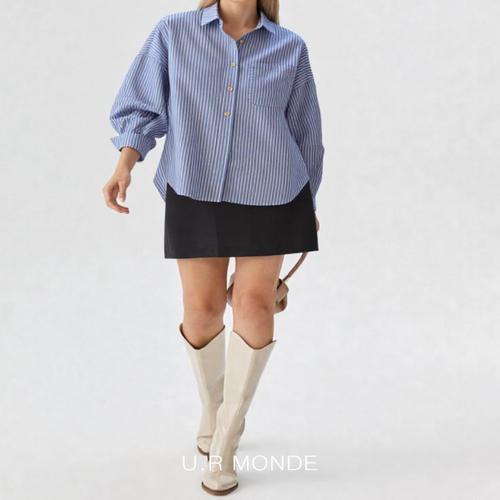 [모노무드]MNO 원컬러 세로 줄무늬걸스 오피스 톱셔츠 심플