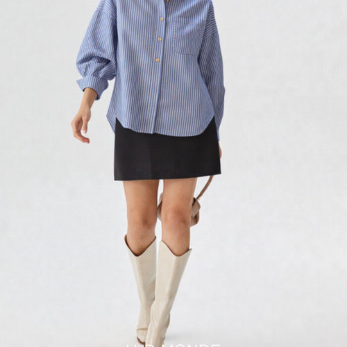 유아몽드 / 블루 스트라이프 오버사이즈 롱 셔츠 여성 캐주얼 긴