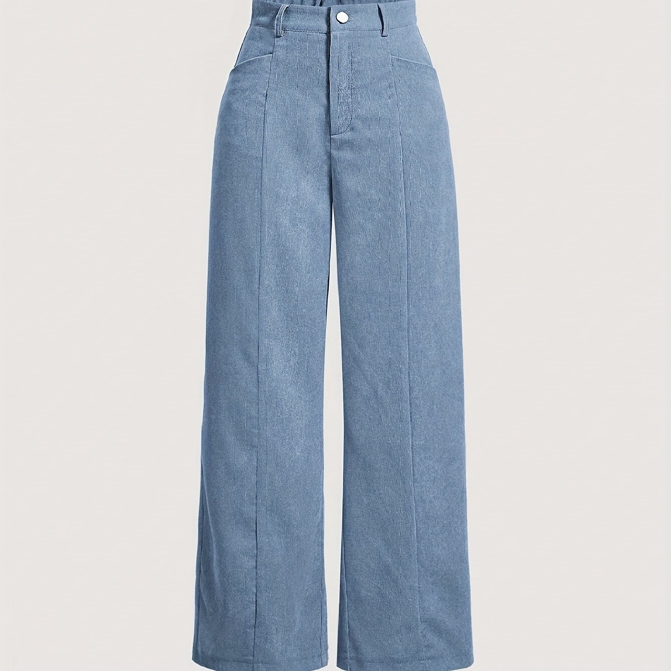 TEMU 여성용 우아한 단색 코듀로이 레그 팬츠 - 세탁기 사용 가능, 폴리에스터