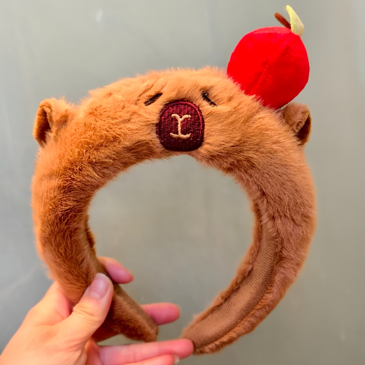 TEMU 플러시 카피바라 헤어밴드, 귀여운 카툰 카피바라 세면 용품, 가을 겨울용 하이 크라운 헤어밴드