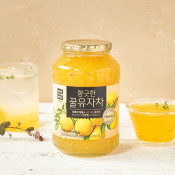 꽃샘 꿀유자차 1kg 유리병 유자차 잼대용 1개
