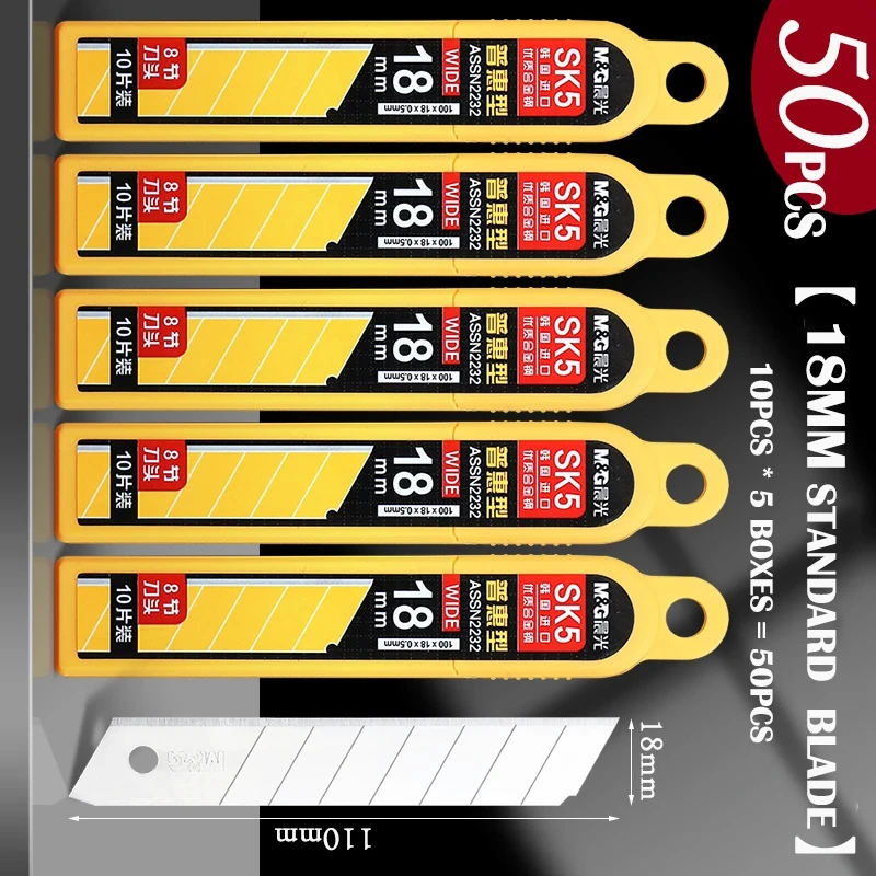 M & G 10 개/몫 SK5 스틸 커터 블레이드 9mm/18mm 커팅 유틸리티 나이프 블레이드 두께 DIY 내구성 아트 커터