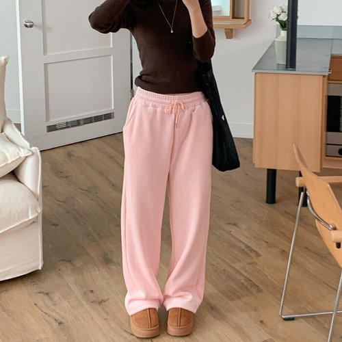 [옷자락] 여자 겨울 융기모 와이드 일자 트레이닝 포켓 밴딩 팬츠