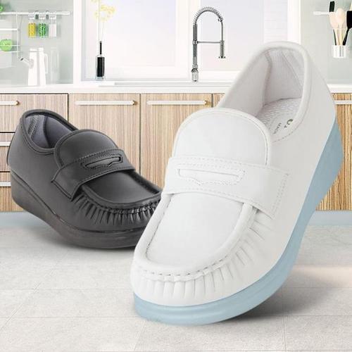 여성 솔리드 할머니 두꺼운굽 화이트 단화_4