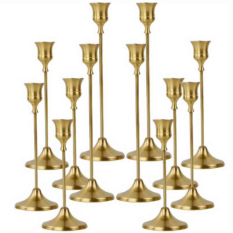 TEMU 12개/6개 금속 벨 촛대, 크리스마스, 할로윈, 부활절, 하누카, 추수감사절, 결혼식 및 연회 센터피스, 가정 및 호텔 장식, 생일 선물, 브러시 골드 마감, 촛불 포함되지 않음