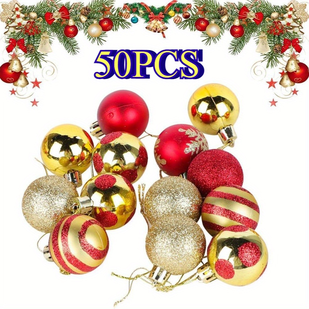 TEMU 50개 크리스마스 장식 세트 - 반짝이는 레드 & 골든 데코 볼 9가지 스타일! 트리, 화환, 가랜드, 웨딩, 파티 장식에 완벽한 홈 스타일링과 크리스마스 선물, 벽난로 액센트용