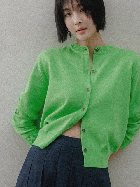 [메무아] 백라벨 솔리드 가디건(네온라임)