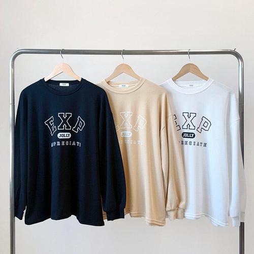 [다잇템]여성 티셔츠 나염 루즈한 환절기 롱슬리브 이너