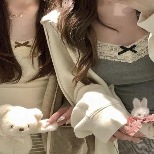 [엄지척]이너 민소매 골지 끈나시 티 나시 레이스 리본 슬림핏_19646309_667501