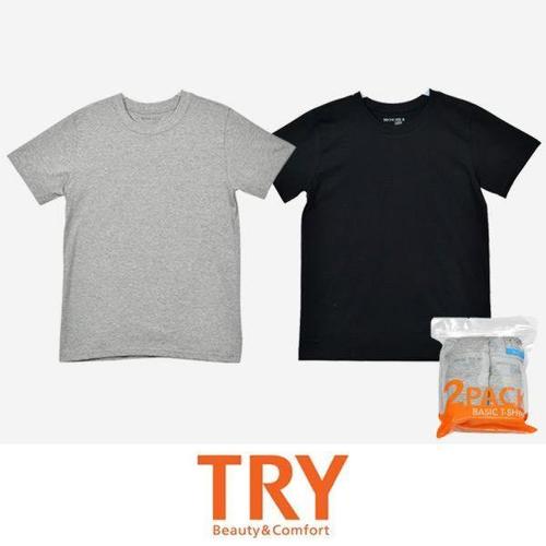 [2-Pack] Soft 레이어드 티셔츠 남녀공용 기본 라운드 무지 반팔티 이너티 롱티 빅사이즈 (M-3XL)