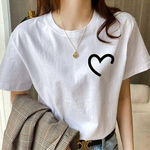 [에이치플러스몰]하트 프린트 여름 자켓 이너 라운드 넥 반팔 티셔츠