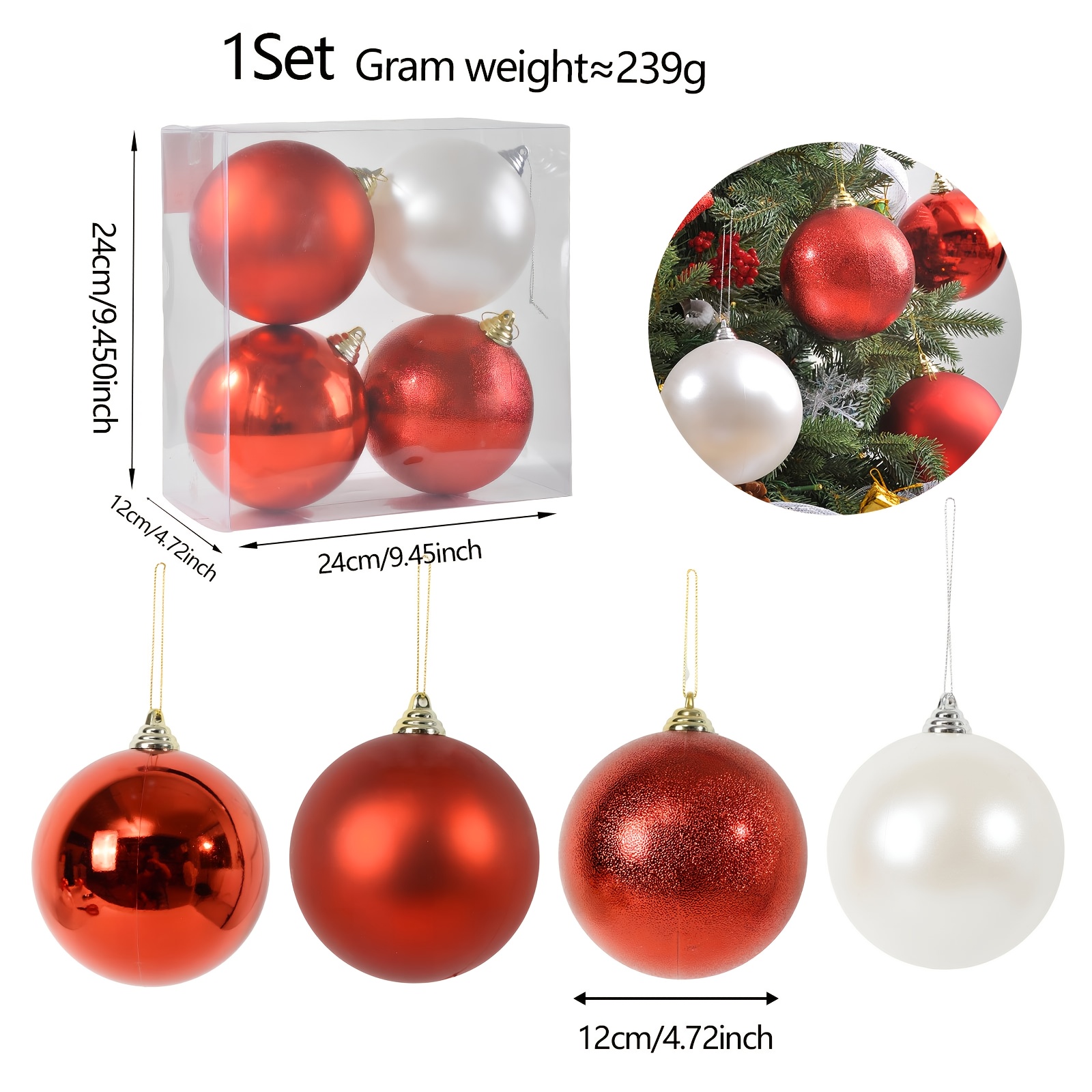 TEMU 크리스마스 트리 볼 장식품 4개 세트, 수제 크리스마스 트리 장식 매달린 공, 4.72인치 구형 휴일 장식품, 빨강/흰색 크리스마스 트리 플라스틱 매달린 공, 결혼식 파티 크리스마스 장식 소품