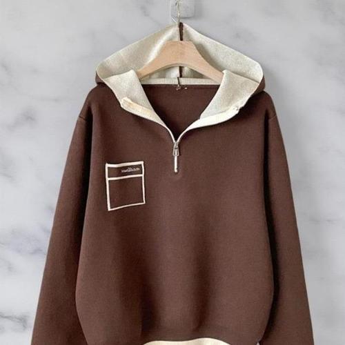[다잇템][다잇템] 여성 스퀘어 캐쥬얼 후디 콘트라스트 주머니 하프집업 니트웨어_21947001_588872