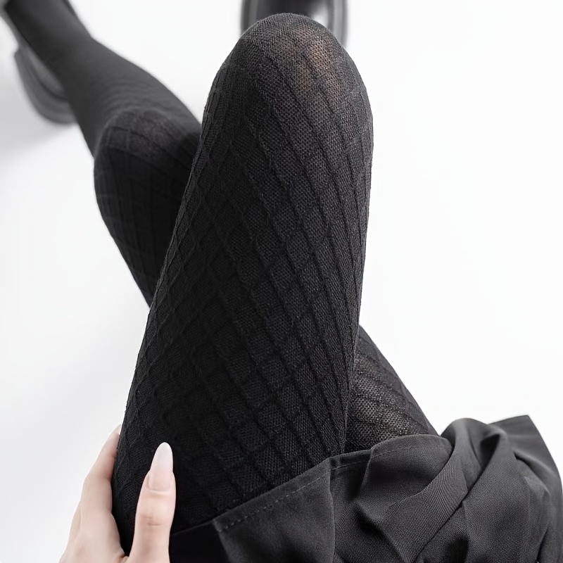 TEMU 1pc 여성용 블랙 트위드 스타일 티츠 - 기하학적 패턴, 신축성 있는 소재, 손세탁 가능, 봄 & 가을 패션에 완벽한 스타일리시 레깅스 | 빈티지 인스피어드 디자인 | 신축성 있는 티츠